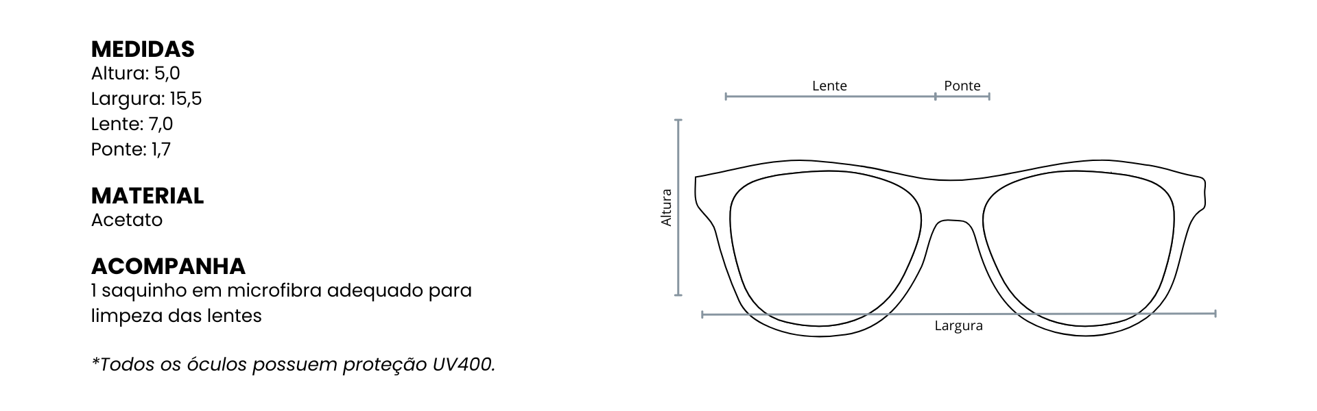 Óculos Viena em acetato de alta qualidade, lentes com proteção UV400.
